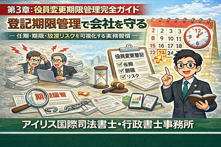 役員変更登記は「忘れやすく、しかし確実にリスクになる」会社実務の代表例です。変更が生じた場合、原則2週間以内の登記申請が必要で、放置すると過料の対象となります。本記事では期限の考え方、任期制度の整理、過料リスクの実態、判断フローまで体系的に解説します。