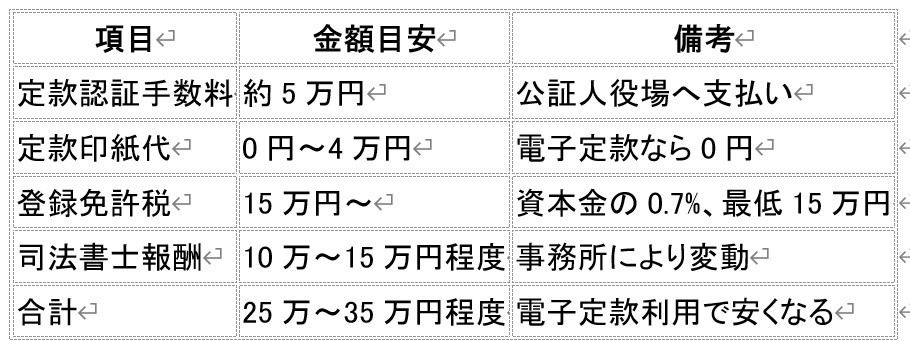登録免許税(資本金の0.7%、最低15万円)が必要
